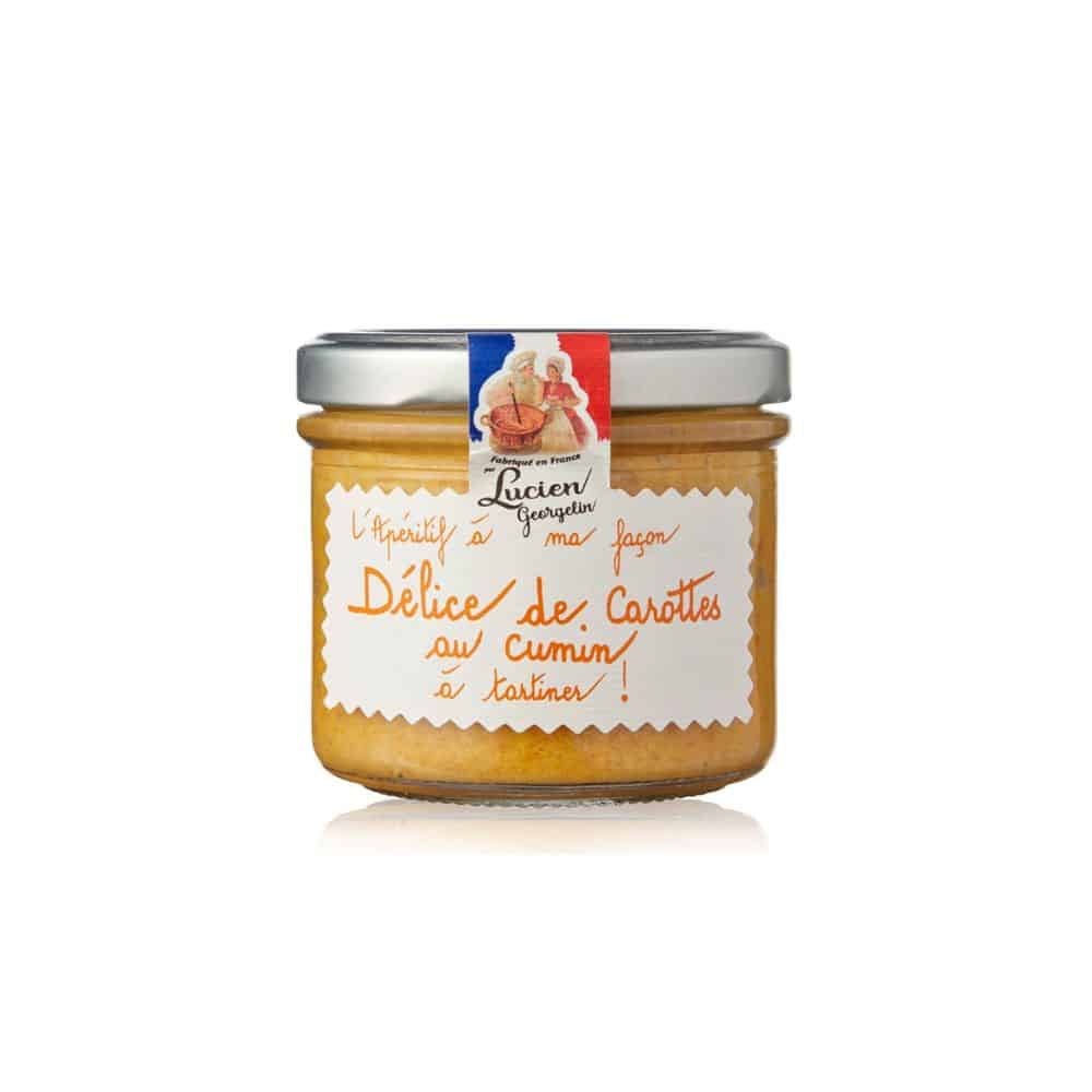 Ingrédients : Carottes 74%, crème stérilisée (crème, stabilisant: carraghénanes), sel, sésame, cumin 0,36%, poivre.